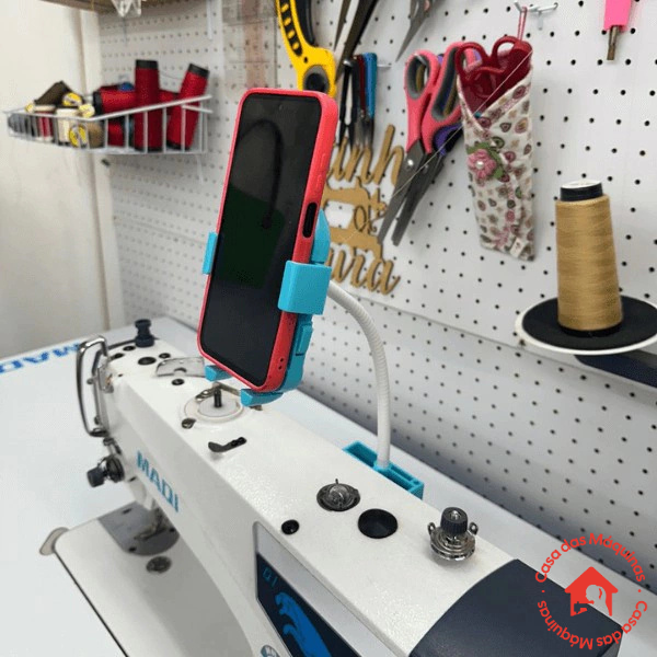 ● Braço flexível que se conecta ao prendedor da agulha, acompanhando o movimento de subida e descida.