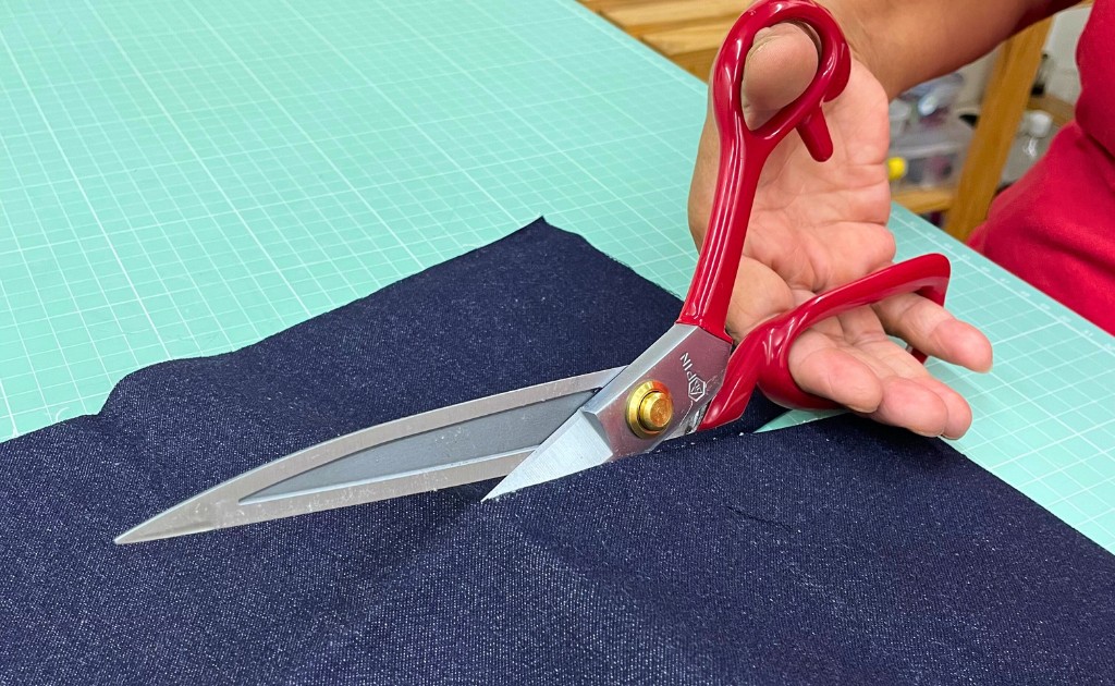 Escolha uma tesoura exclusiva para tecido e de boa qualidade, para te acompanhar por muito tempo aí no ateliê, sem te deixar na mão. Nada de usar ela em papel, plástico ou outros materiais — isso destrói o fio dela! E ah, não esquece de esconder do maridão, ela com certeza vai durar muito mais!