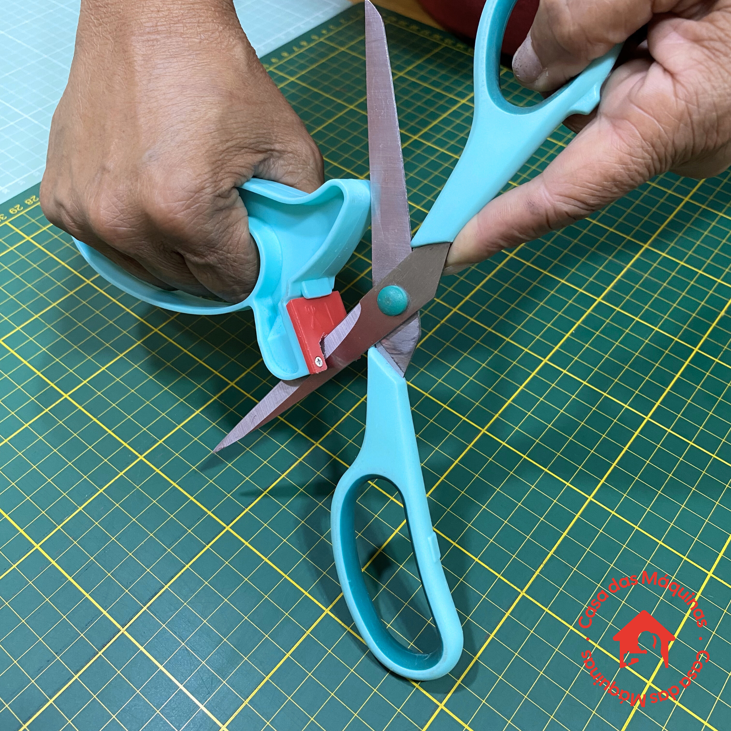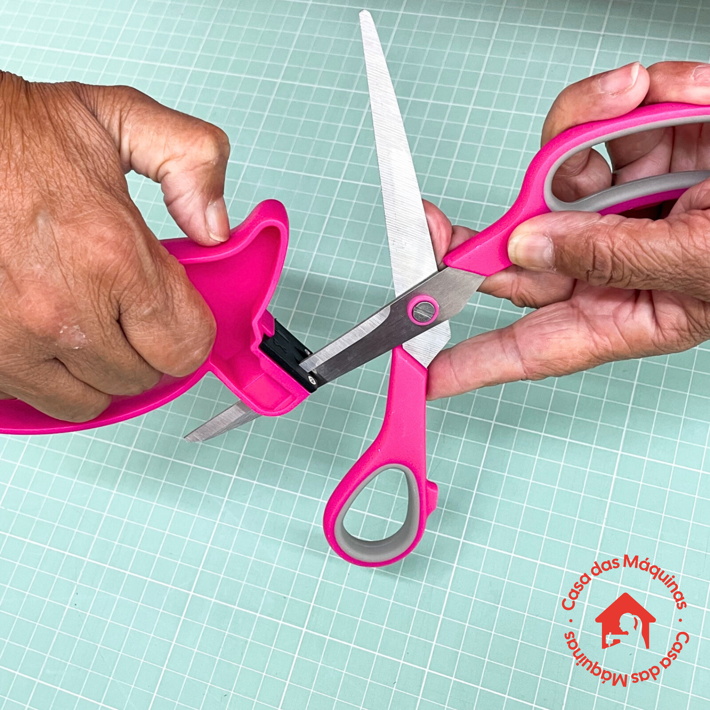 Está cansada de lutar com tesoura cega, que mastiga o tecido e atrapalha seu trabalho? Com este amolador, você mantém o corte sempre em dia — sem complicação e sem risco para as mãos.