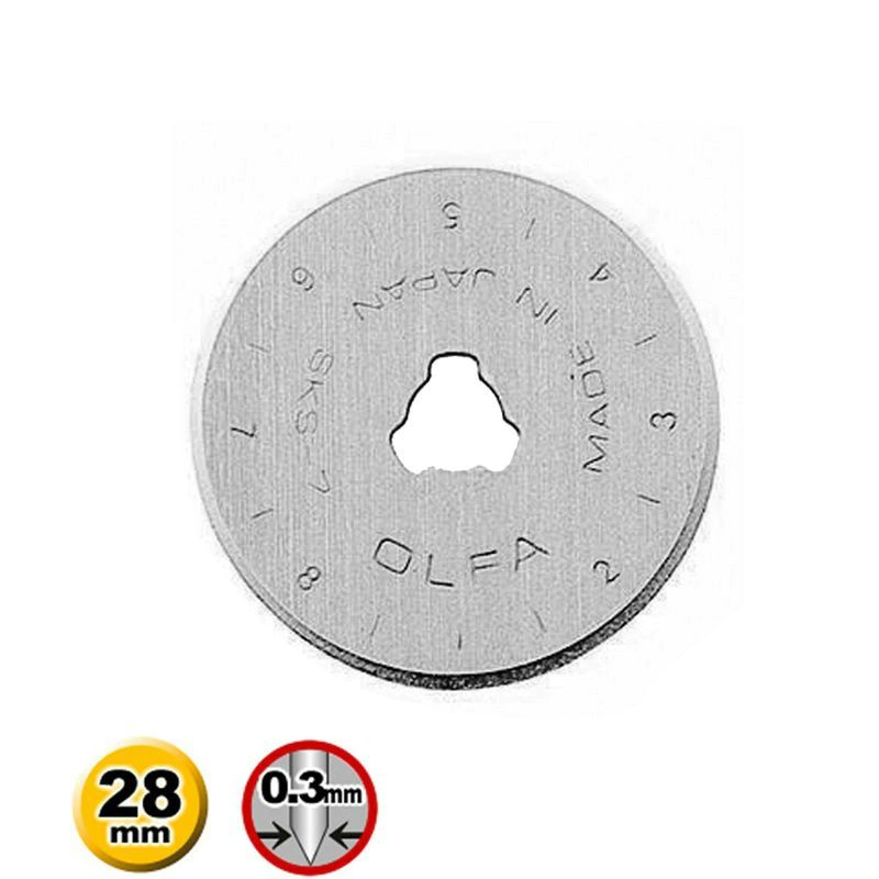 Lâmina Rotativa Olfa RB28-2 28mm exclusiva para os Cortadores Olfa RTY-1/G e RTY-1/DX. Vem em um estojo com 2 2 lâminas.
