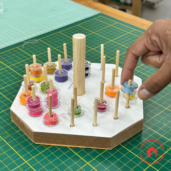 Com o porta bobinas, você ganha tempo, reduz o estresse e deixa seu ateliê muito mais funcional. Tudo fica no lugar certo, visível e fácil de pegar, trazendo mais fluidez para o seu processo de costura e evitando desperdício de linha.