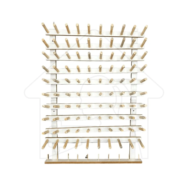 Porta cones Organizador com Pinos para linhas, fios, carreteis + 10 pinos para bobinas ou pequenos carretéis. Quadro porta fio suporte organizador, com esse quadro voce pode organizar seus cones, linhas, novelos, carreteis, bobinas entre outros. Escolha entre o suporte para 50 cones ou 100 cones.